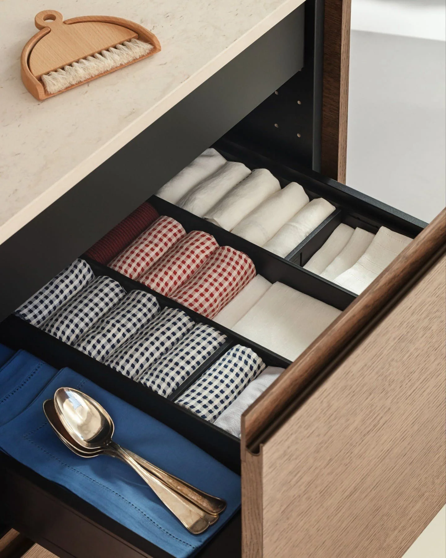 Svane Køkkenet - flot overblik i køkkenskuffen indrettet med det funktionelle ambria-systemet.
