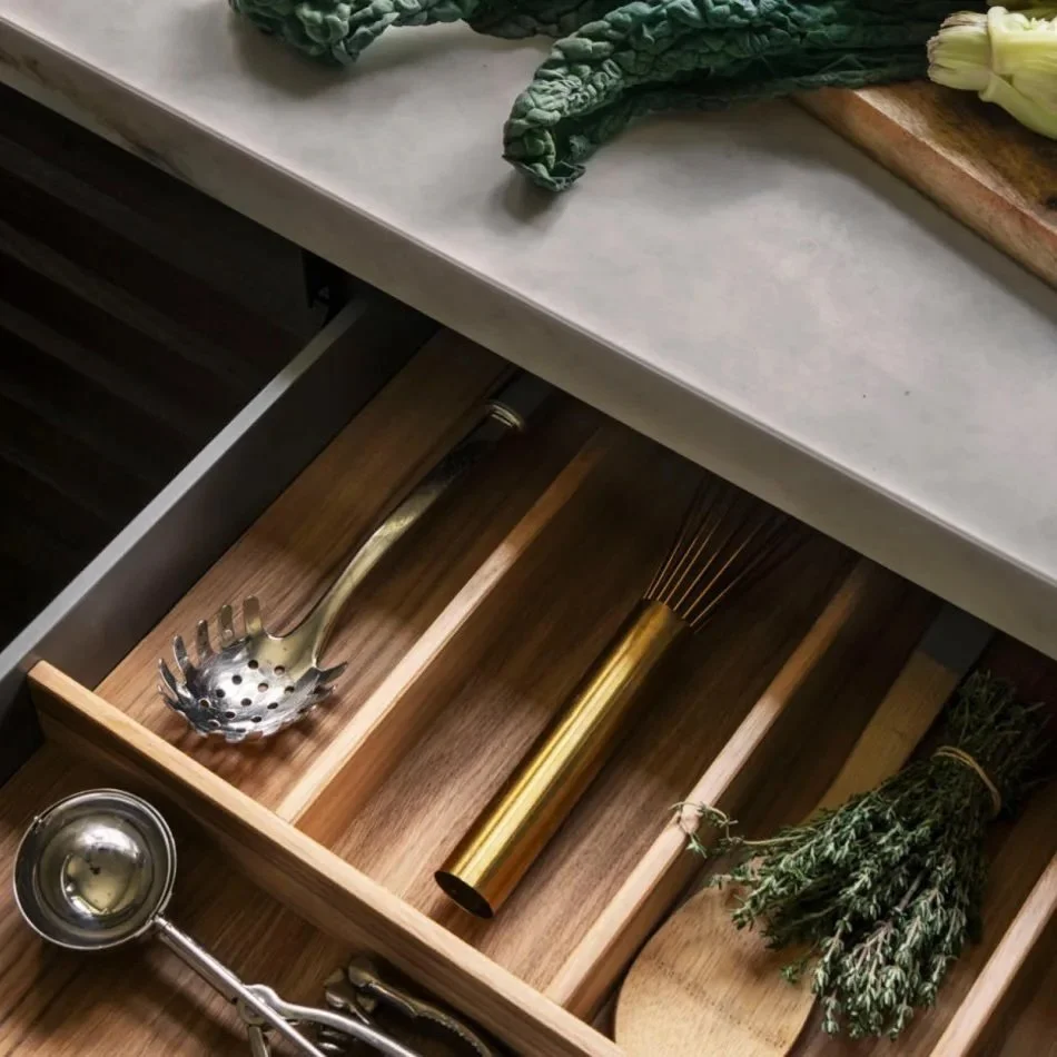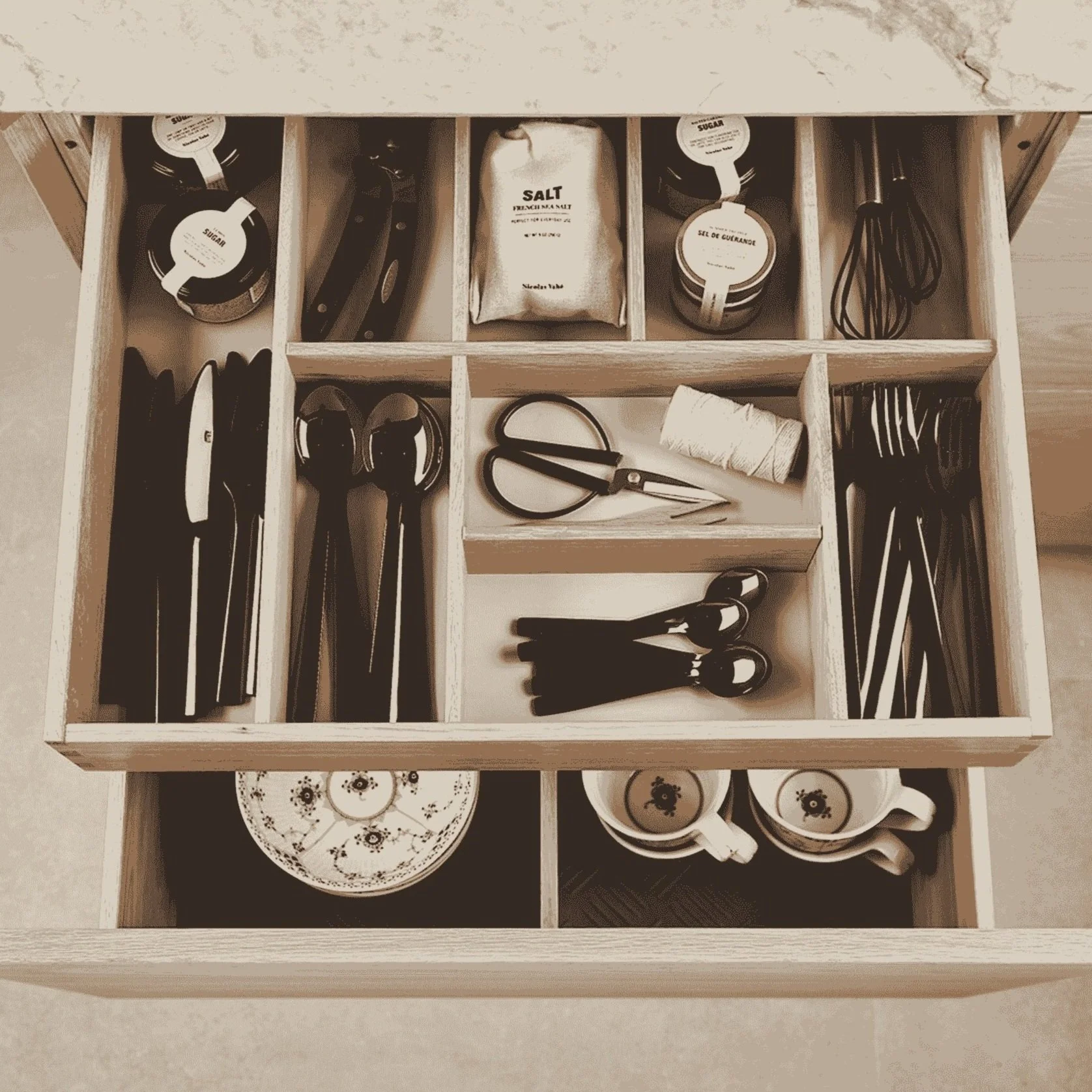 Et godt tips er faktisk at starte med at lægge alle dine køkkenredskaber frem for at få et overblik over, hvilke der skal grupperes sammen, hvad du bruger mest/mindst og hvor de bedst kan placeres. Det giver dig mulighed for at lave en plan for indretning af skufferne.