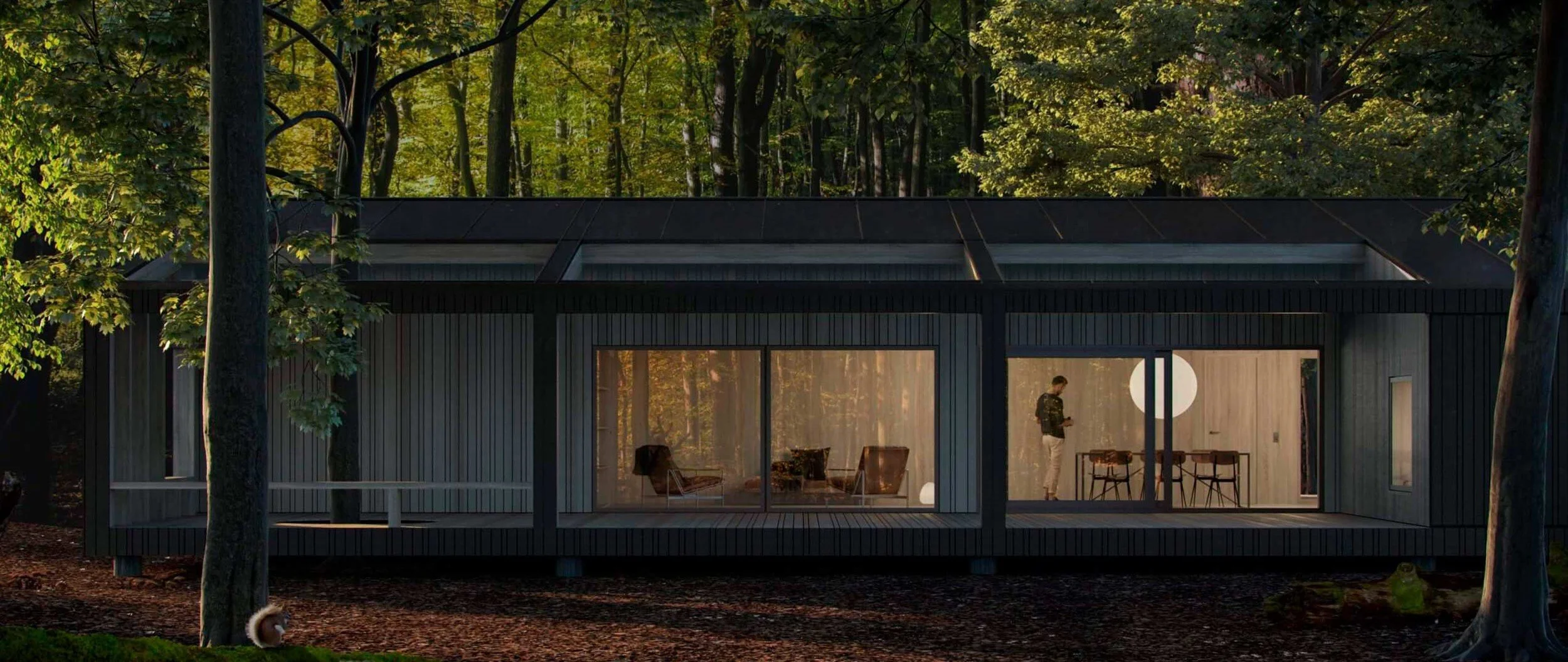 Modulhusene udføres i træ og bæredygtige materialer fra inderst til yderst. Modulerne på 48 m² kan sættes sammen og kombineres i forskellige former – og skaleres op fra et sommerhus til sociale boenheder og en hel landsby