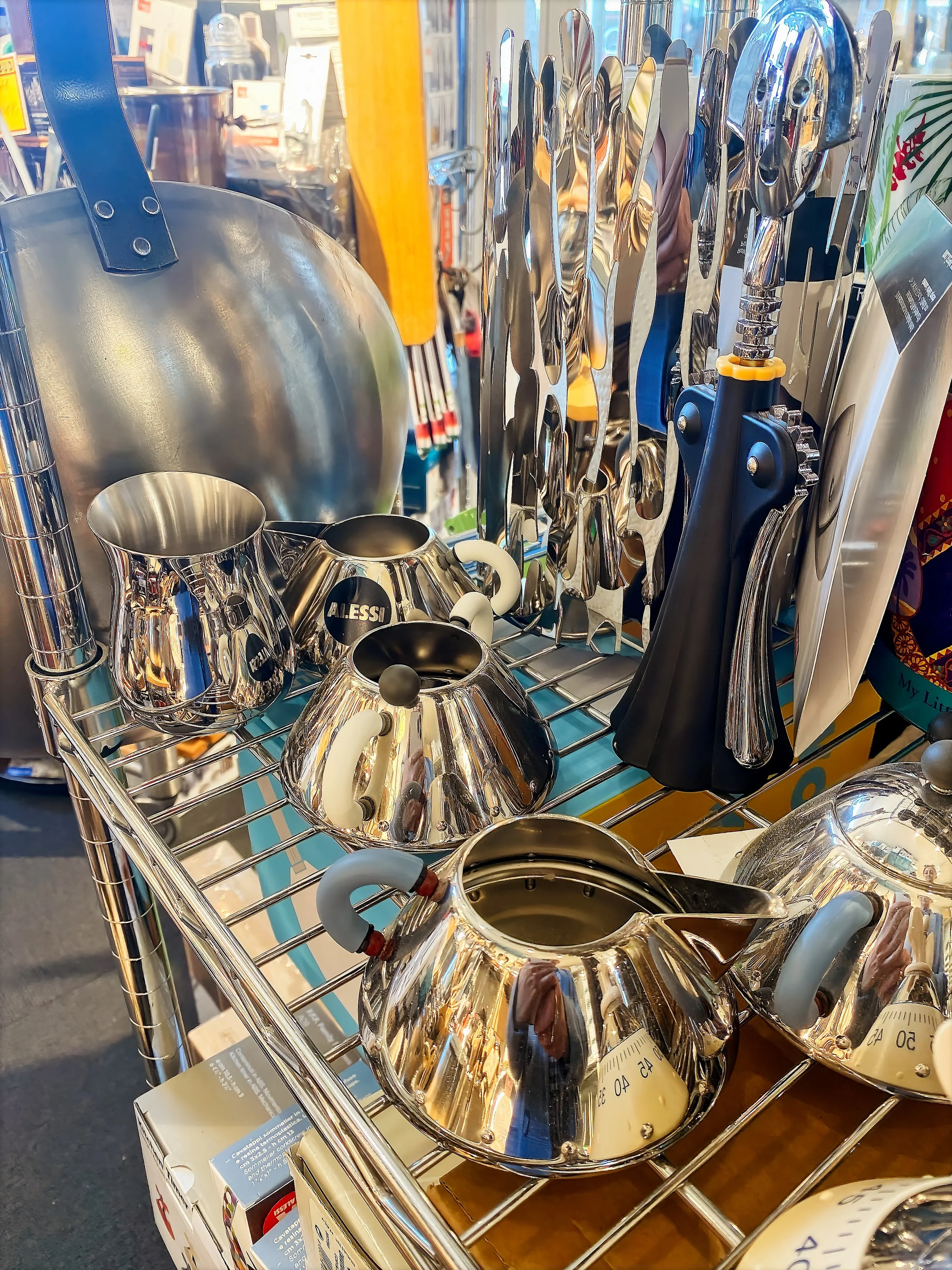 Alt i Køkkenudstyr lyder butikkens slogan, og det holder. På reoler og i låste montre går vi på opdagelse for at finde det ypperste inden for næsten alle kategorier – japanske kokkeknive i damaskeret stål, kobbergryder, hundredevis af forskellige redskaber til at røre og piske med, peberkværne der virker og kaffemaskiner til den gode kaffe.