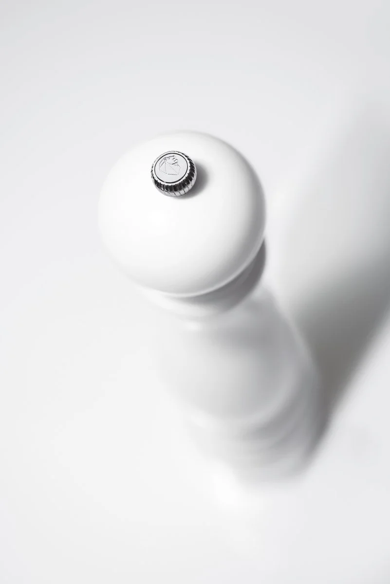 EN HVID PEUGEOT til at kværne det gode salt med. Det ikoniske franske brand, der er kongen blandt salt- og peberkværne, lancerer en ny serie kværne, Parisrama U’Select. Nye former og nye farver. Men selv om den grønne kværn rimer på træets PEFC-certificeringer, kan du jo godt vælge en skinnende hvid.