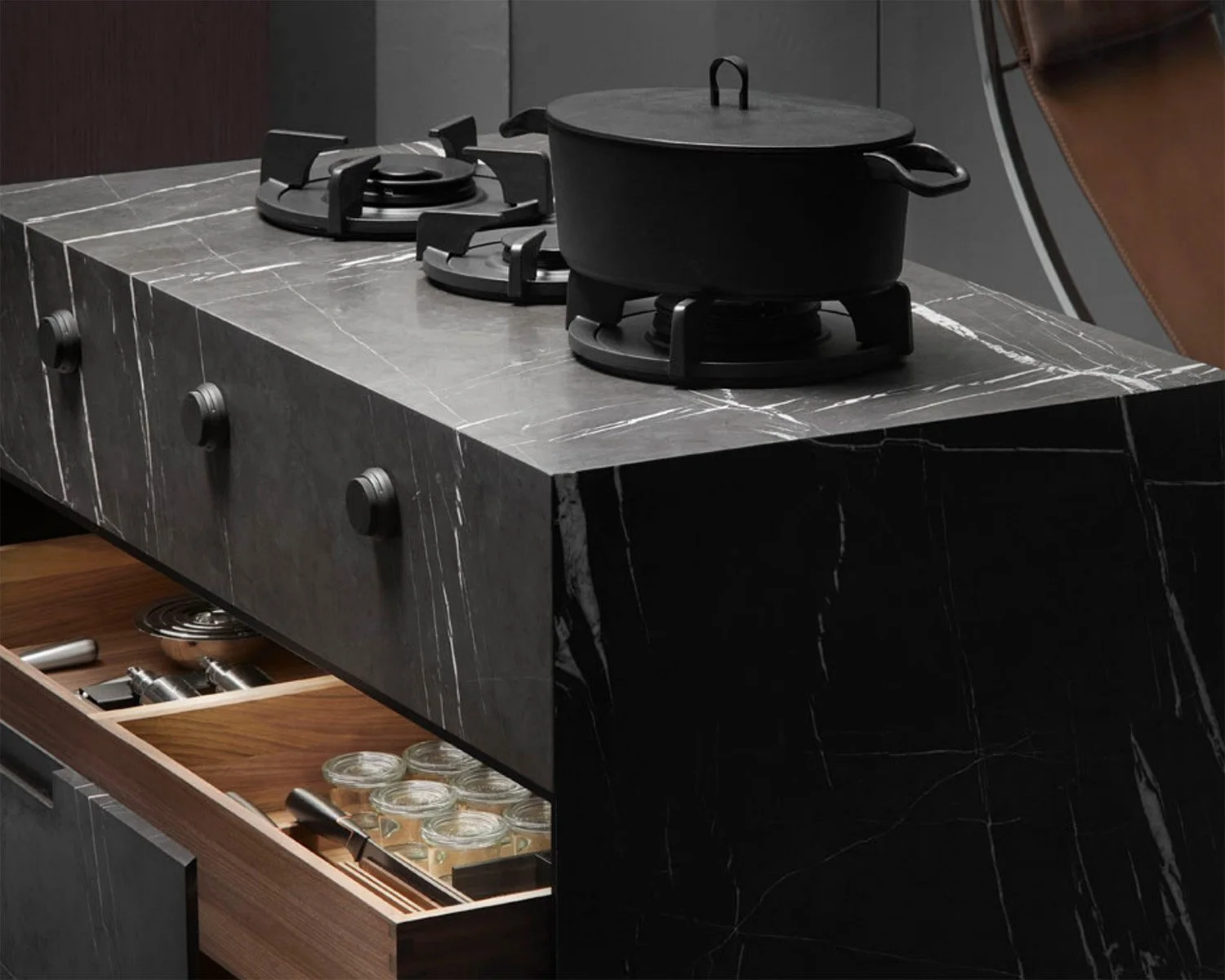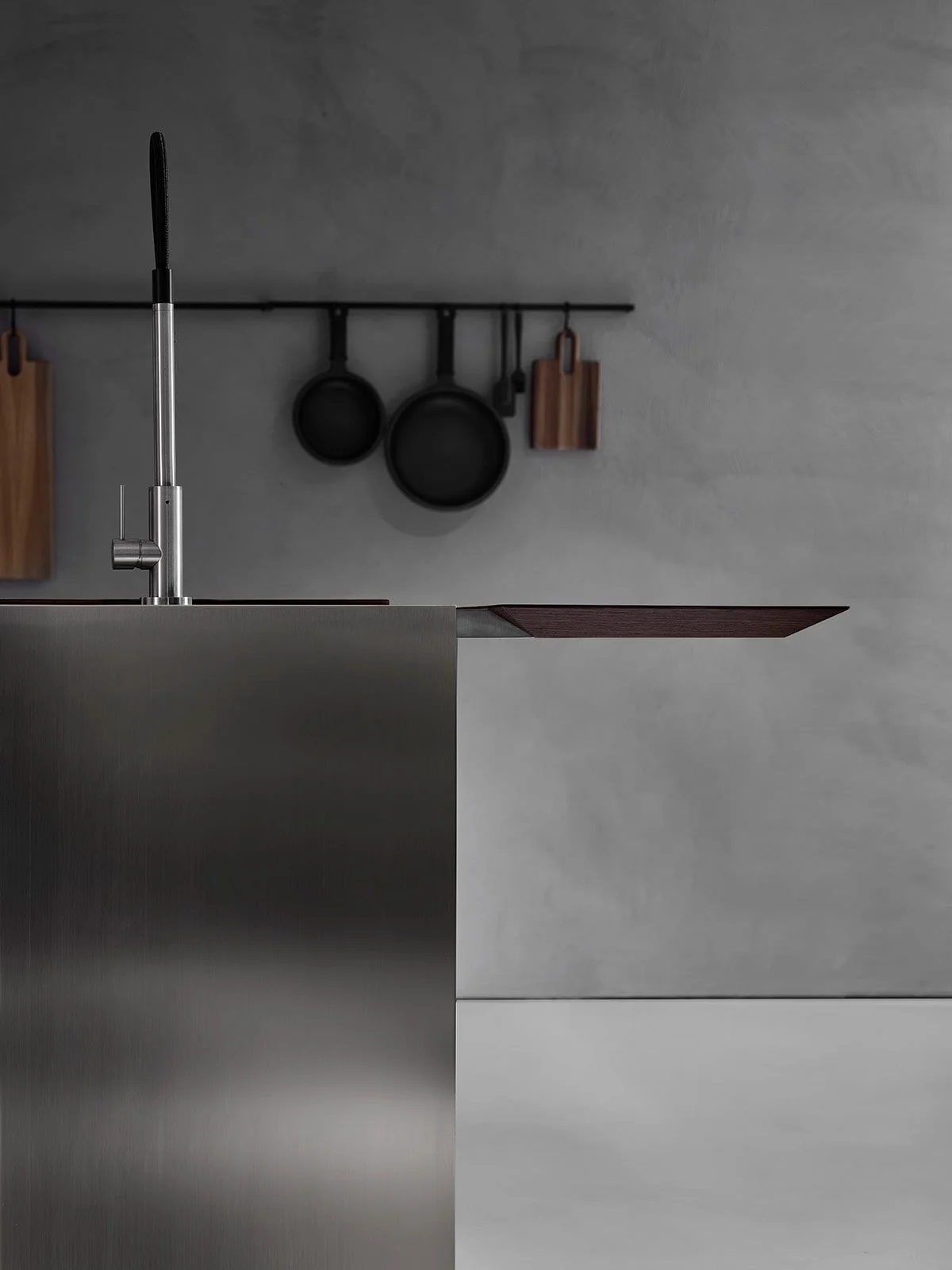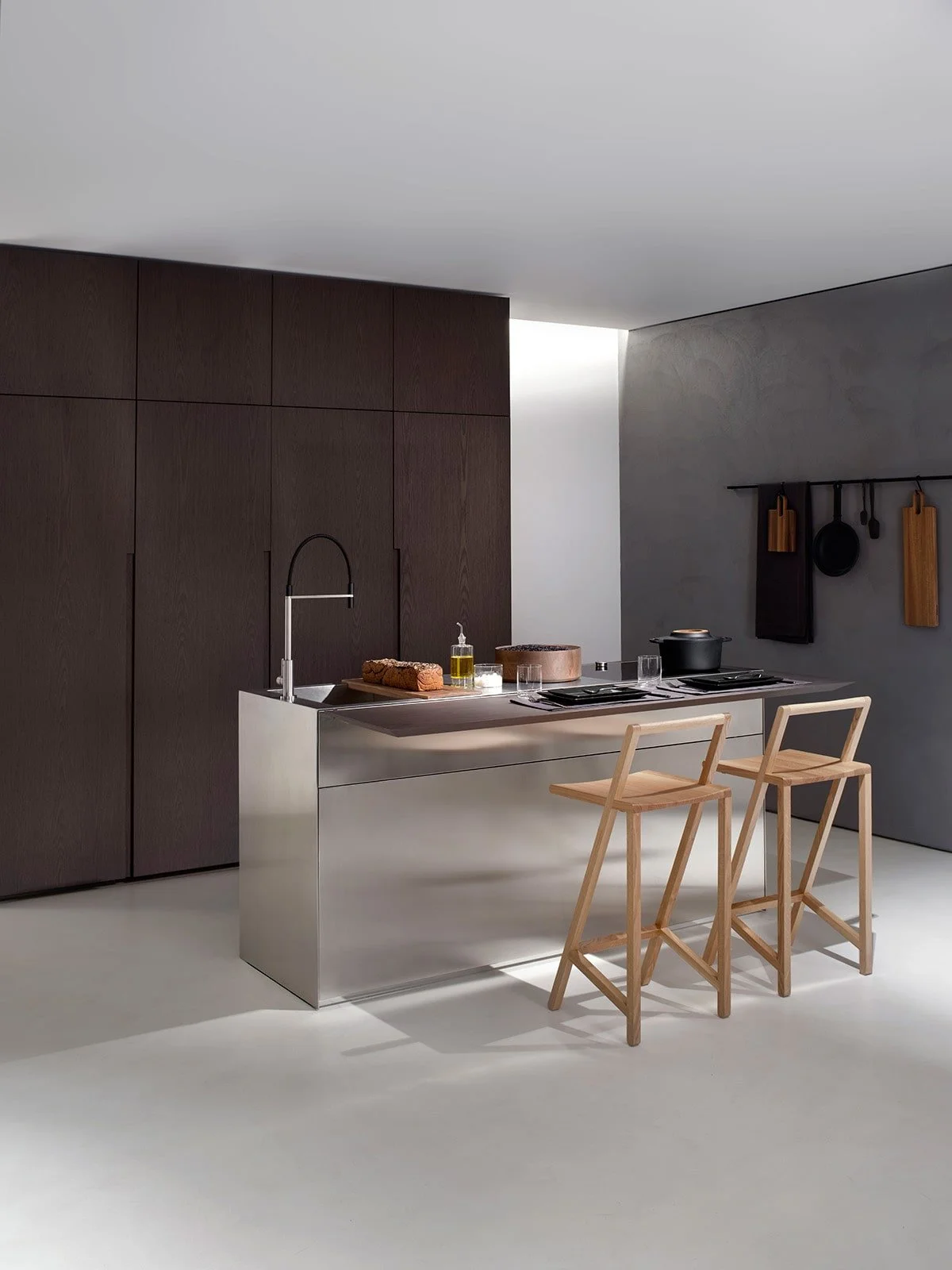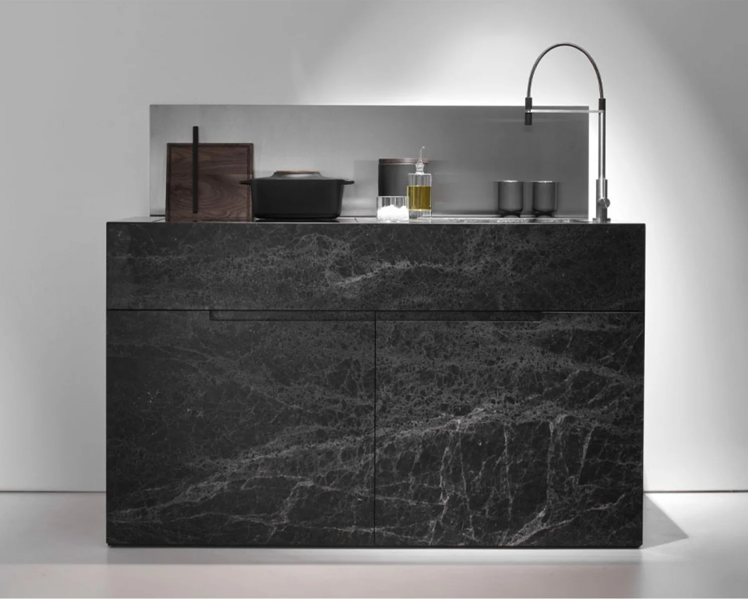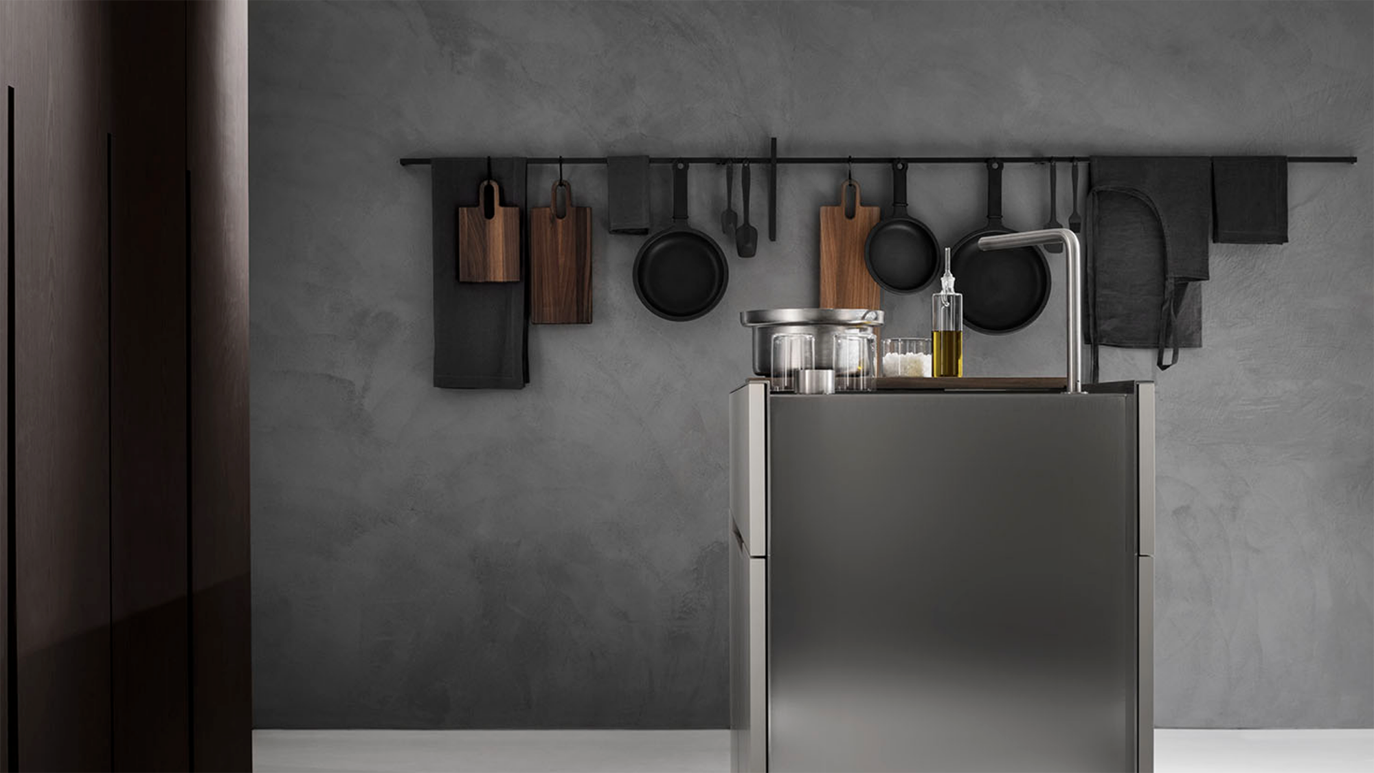 Italienerne har for længst fanget den stærke tendens til downsizing, måske fordi de har været vant til at bo småt i storbyerne. To af de toneangivende køkkenbrands - Falper og Alpes Inox - giver hver især deres bud på en alt-i-én køkkenø spækket med innovative løsninger og i toplækkert design.